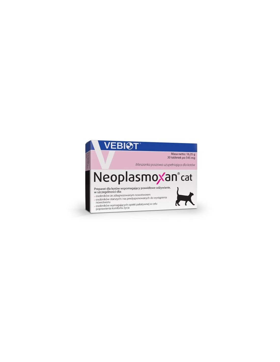Neoplasmoxan cat zawiera związki ważne w żywieniu kotów ze stwierdzonym procesem nowotworowym, tj. substancje modulujące odpowiedź immunologiczną organizmu, antyoksydanty oraz związki hamujące niekontrolowaną proliferację zmienionych komórek i indukujące ich apoptozę.